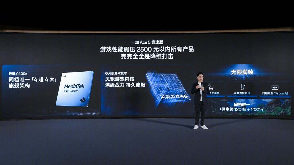 يأتي OnePlus Ace 5 Racing مزودًا بمعالج Dimensity 9400e من MediaTek، الذي تم الإعلان عنه اليوم. أما OnePlus Ace 5 Ultra، فسيتضمن معالج Dimensity 9400+، والذي يُعد من أقوى المعالجات التي تقدمها شركة MediaTek حاليًا.
