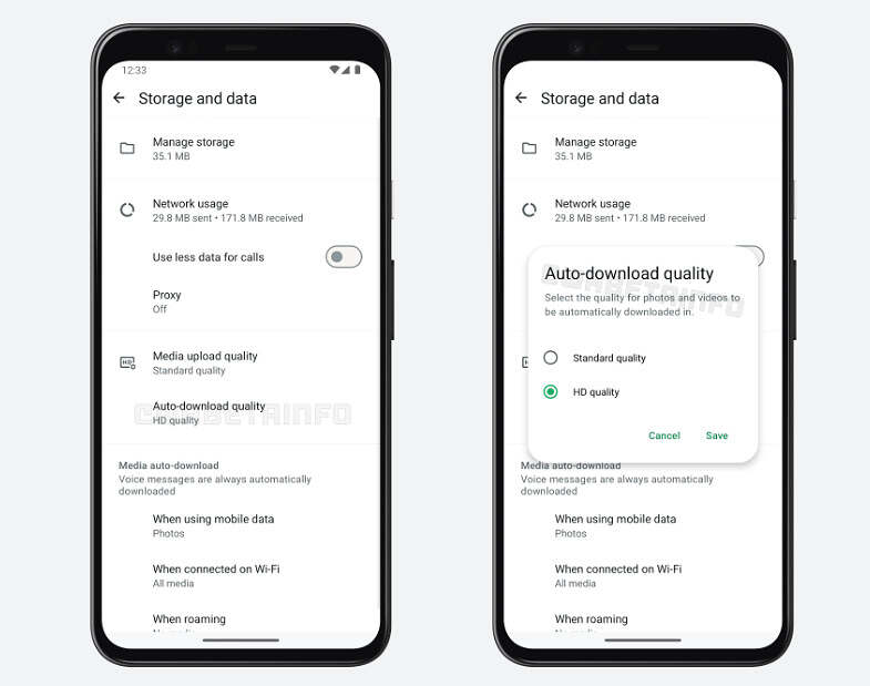 وستكون هناك خياران للتنزيل: الجودة القياسية (Standard Quality): تحميل نسخة مضغوطة من الوسائط، وجودة HD: تحميل الوسائط بجودتها العالية.