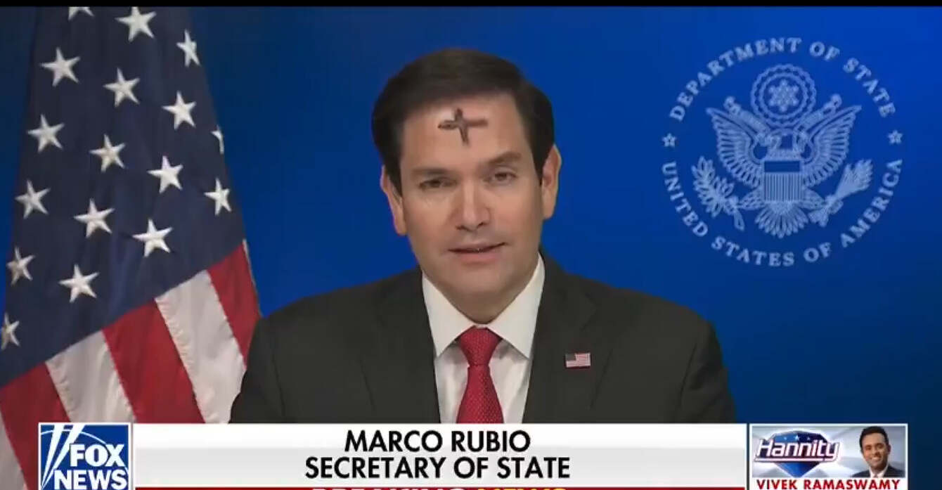 ظهر وزير الخارجية الأمريكي ماركو روبيو في مقابلة مع شبكة "فوكس نيوز" وهو يحمل على جبينه "صليب الرماد"، وهي علامة ترتبط بالمسيحيين الغربيين وتعرف باسم "صليب أربعاء الرماد".