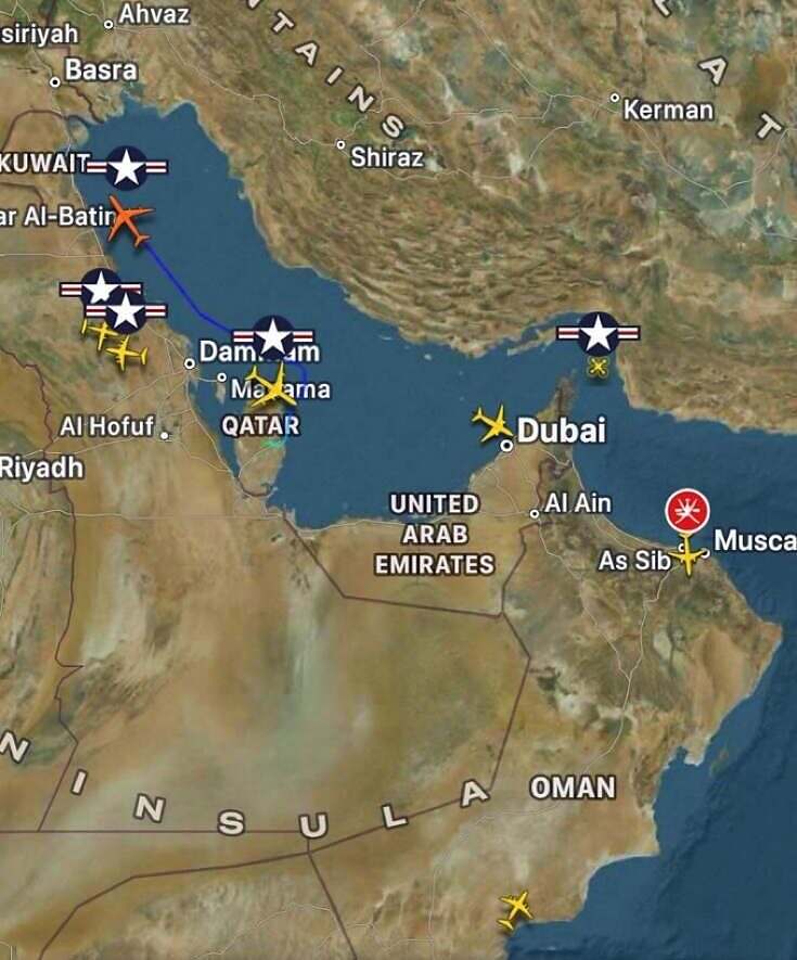 ولم يغفل الجانب الاستراتيجي، إذ رُصد تحليق طائرة بوينغ 737 BBJ الخاصة، المستخدمة غالبًا في المهام القيادية والدبلوماسية، ما يعكس وجود تنسيق عالٍ المستوى بين القيادة الأمريكية في الخليج والتحالفات الإقليمية. وتأتي هذه التحركات بالتزامن مع استعداد واشنطن لعقد مناقشات أمنية رفيعة مع دول الخليج لتعزيز التنسيق الاستراتيجي والاستعداد لأي طارئ محتمل.