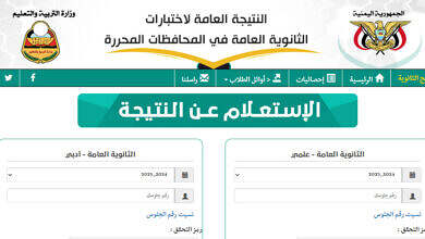 رابط نتائج الثانوية العامة 2024-2025 في اليمن متاح الآن عبر منصة وزارة التعليم بعدن.. استعلم باسمك أو رقم الجلوس